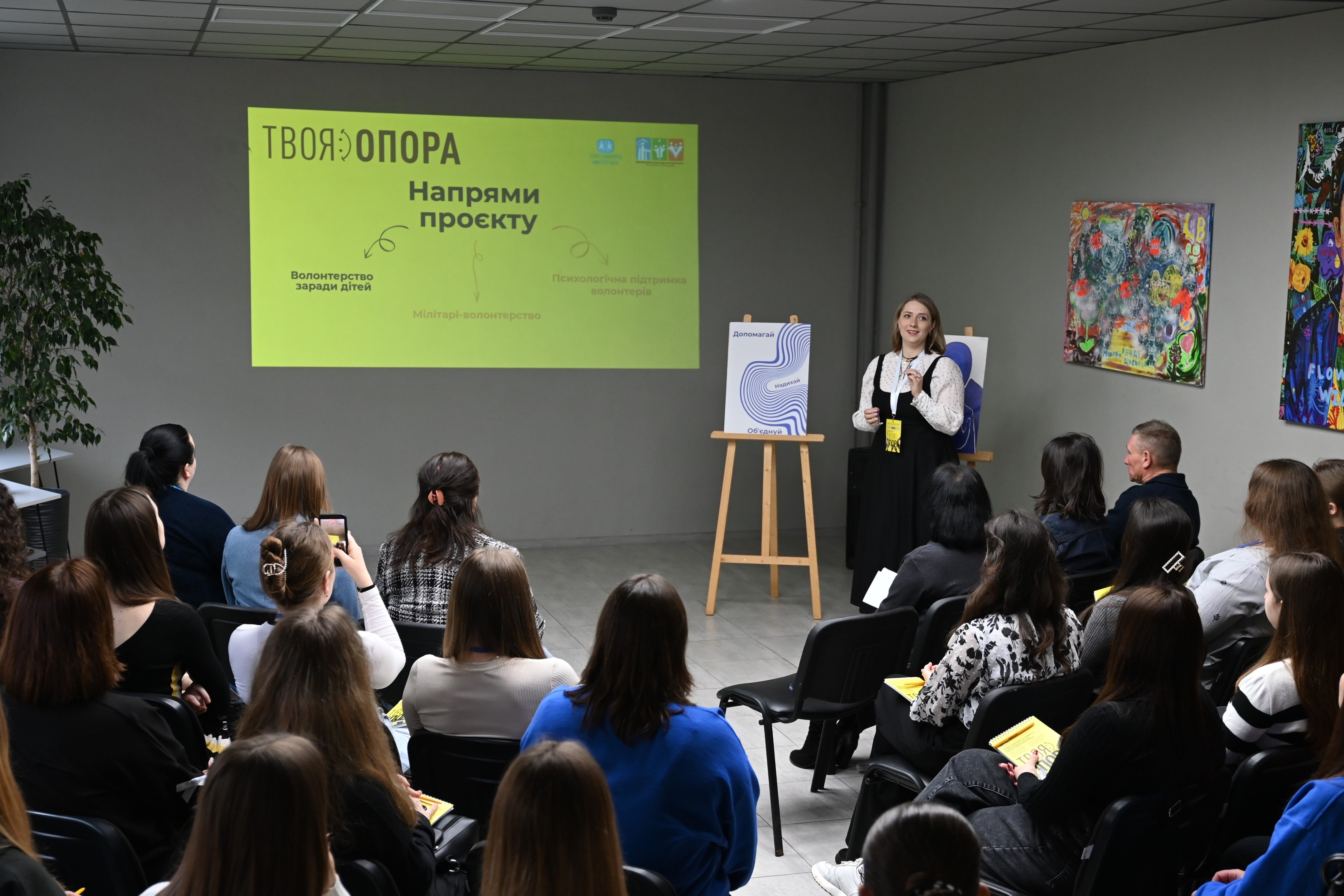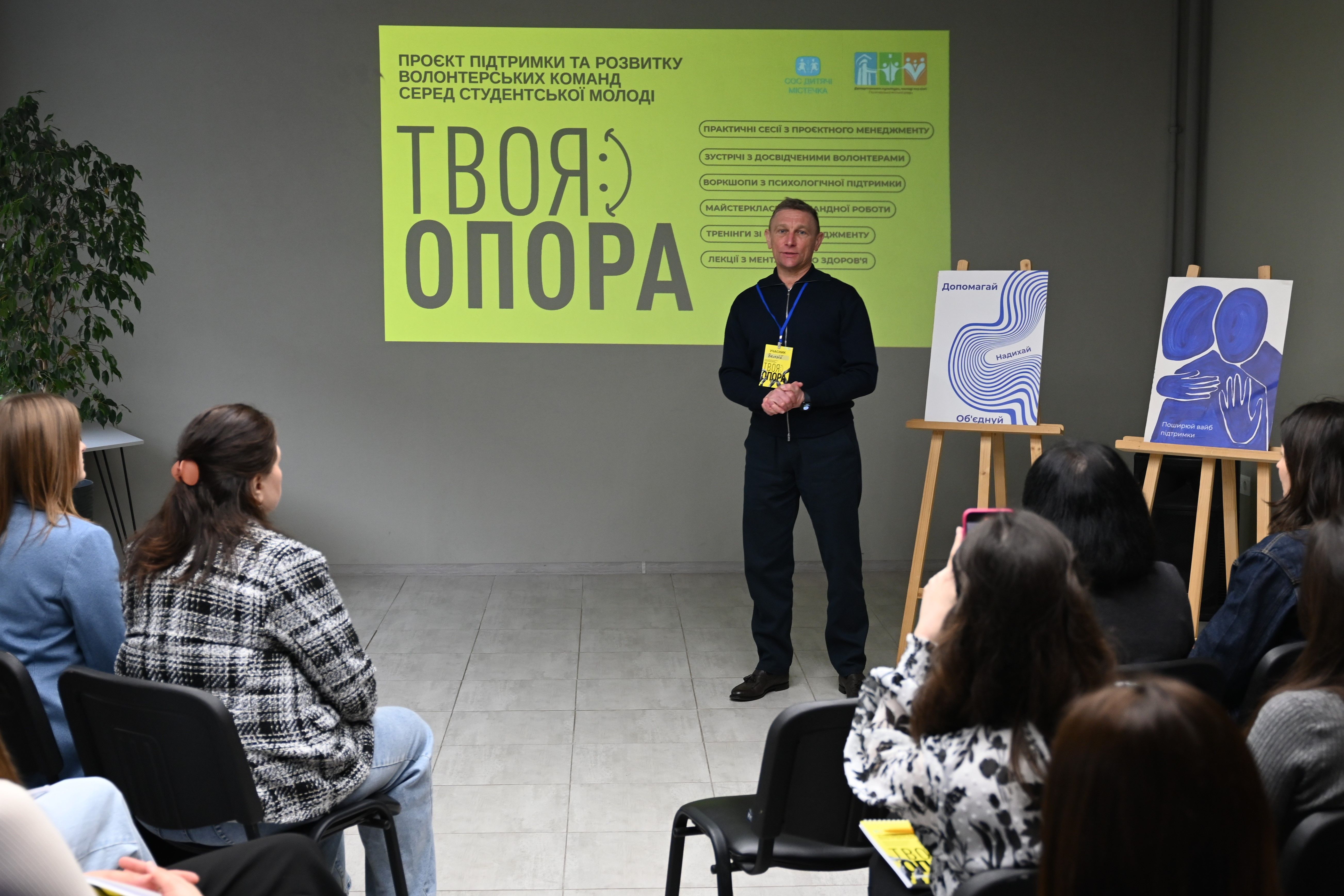Проєкт «Твоя опора» передбачає проведення серії заходів, зокрема, тренінгів зі стрес-менеджменту, лекцій з ментального здоров’я, майстер-класів із командної роботи, воркшопів із психологічної підтримки та практичних сесій із проєктного менеджменту.