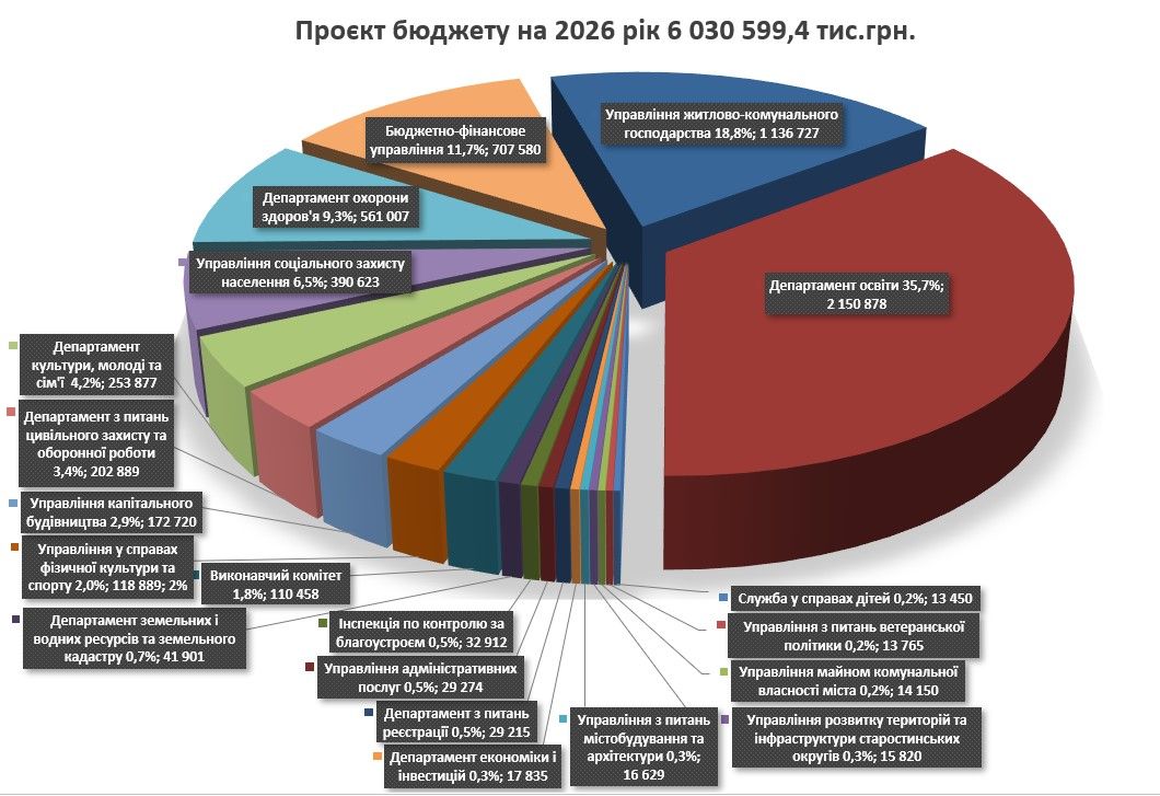 Загалом бюджет громади розподілений між галузями. Найбільше коштів передбачено на освіту - 2 млрд 150 млн грн, ЖКГ - 1 млрд 136 млн грн, медицину - 561 млн грн.